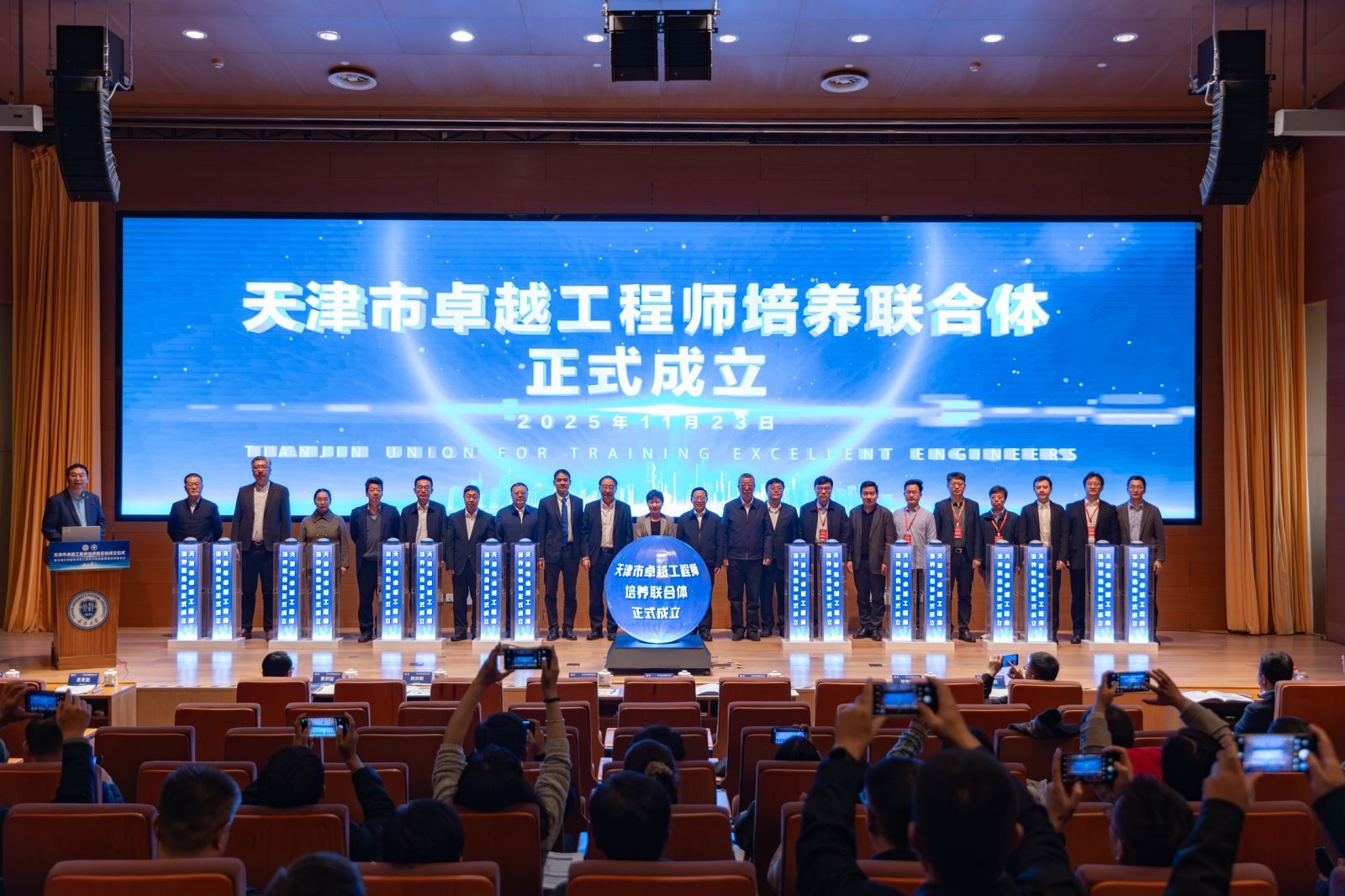 11月23日,天津市杰出工程师培育结合体成立典礼暨国度杰出工程师学院高质量成长扶植会议正在北洋园校区隆沉举行。会议由天津市教委从办,牵头承办,天津市委组织部、市发改委、市科技局、市工信局、市人社局、市国资委协办,汇聚了来自、高校、科研院所及40余家行业龙头企业的近百位嘉宾以及200余位校企师生代表,配合这一鞭策天津市工程教育取产教深度融合的主要时辰。天津市副市长张玲,天津市委教育工委常务副、市教委从任荆洪阳,工程院院士、新工科教育核心从任、“国度杰出工程师”称号获得者、广西玉柴机械股份无限公司总工程师林铁坚,天津市国资委党委副王洪,天津市工程师学会副秘书长翟震强以及8所正在津高校、8家天津市行业龙头企业代表配合为结合体揭牌。校长柴立元出席,会议由党委常委、副校长王天友掌管。加入会议的还有天津科技大学党委常委、副校长高发现,天津城建大学党委常委、副校长阎兵,天津轨道交通集团无限公司党委、董事长吴秉军,中国汽车手艺研究核心无限公司党委副王晓杉,副总司理龚进峰,天津百利机械配备集团无限公司党委副李士骐,天津荣程祥泰投资控股集团无限公司董事会张,曙光消息财产股份无限公司总裁帮理杨鸿轩,三六零科技集团无限公司天津副总裁程海波,联想中国区方案和办事事业群、计谋合做部总司理舒一展,航天科工三院天津津航手艺物理研究所研究室从任松。