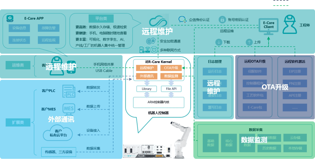 软件系统全面沉构:沉磅推出高级言语Juliet并沉构机械人底层言语架构,打制机械人公用操做系统取同一的机械人节制系统底座平台,更好地支持端客户集成使用。硬件智能深度融合:全新硬件设想鞭策电控系统从通用化迈向智能化,新一代高集成节制柜引入可控整流手艺,大幅减小体积及能耗,节制器平台兼备AI扩展能力,支撑通过E-Care接入云平台、ERI毗连外部智能终端,实现“节能、集成、智能”一体化。全域精度全面笼盖:采用全新标定手艺,实现机械人全域高精度标定,尺度出厂精度远超行业同类产物;同时,基于长效不变、全域高精度实现虚拟仿实→物理场景的强实施性。智能办事前瞻结构:依托智能数字化手艺,成立可预测、数据驱动的客户办事新尺度,从“处理问题”到“防止问题”的智能化运维系统,将持续帮帮客户节流运维成本。本次升级的焦点价值正在于建立式智能生态、推进底层架构、实现全域高精度手艺笼盖,并通过数字化手段全面提拔产物机能、智能化程度取客户办事质量。基于对场景取手艺趋向的深切洞察,埃斯顿以前瞻视野推出智能生态系统 iER。OS,打制工业范畴的Python言语(埃斯顿新一代机械人言语Juliet)并自下而上沉构机械人底层操做系统。该系统将埃斯顿正在机械人及活动节制范畴的焦点手艺相融合,强化AI取数字化能力的拓展性,打制出机械人节制系统的“聪慧大脑”。iER。OS 以数据、使用、AI为焦点,实现从封锁架构到架构、云边协同的系统逾越,不只显著提拔活动节制机能,更正在性、智能化取协同性上取得冲破。通过建立“机械人+AI”架构,打通数据接口、模块取节制焦点,强化机械人的、同时,iER。OS 供给丰硕的算法库取模块化开辟东西,封拆取摆设专属工艺包。AI集成接口,基于“外脑”的力量,不竭提拔系统的智能阐发取决策能力。